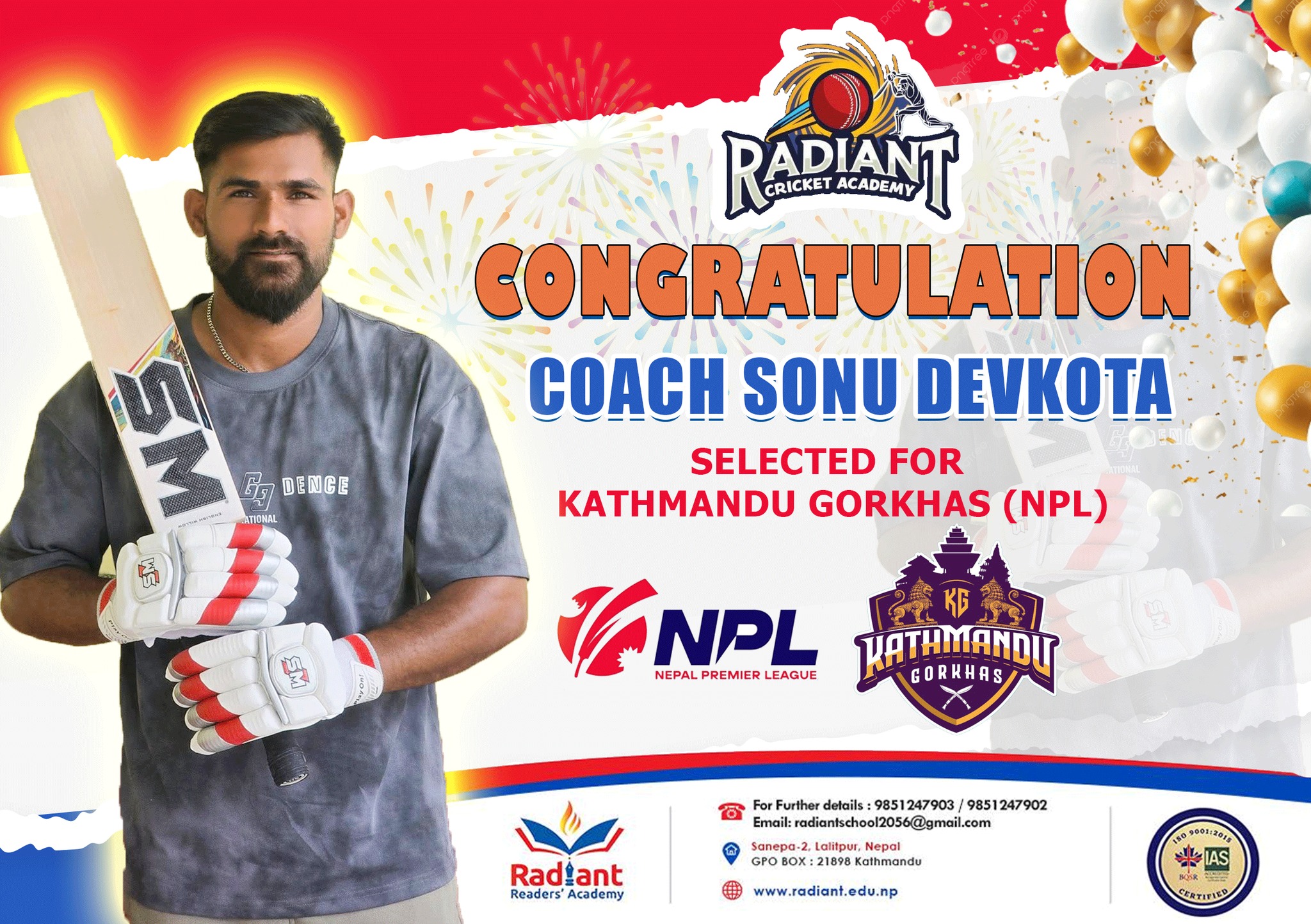 Coach Devkota’s selection to one of the country’s premier cricket tournaments is not only a personal milestone but also a proud moment for the entire Radiant School family. His hard work, commitment, and consistent effort have been recognized at a national level, inspiring everyone associated with the school.